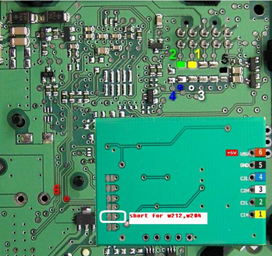 With short, good isolated wire connect Mercedes CAN filter to EZS board according picture: 1-1 (C1H), 2-2(C1L), 3-3(C2H), 4-4(C2L), 5-5(GND), and 6-6 (+5V).