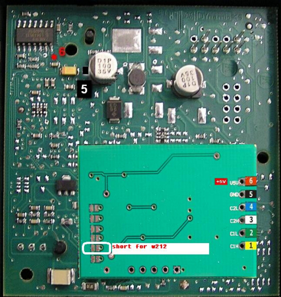 With short, good isolated wire connect Mercedes CAN filter to EZS board according picture: 1-1 (C1H), 2-2(C1L), 3-3(C2H), 4-4(C2L), 5- 5(GND), and 6-6 (+5V).